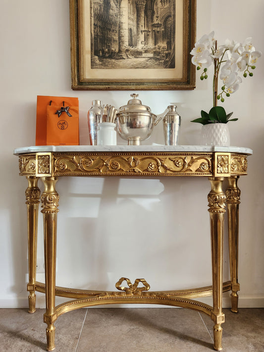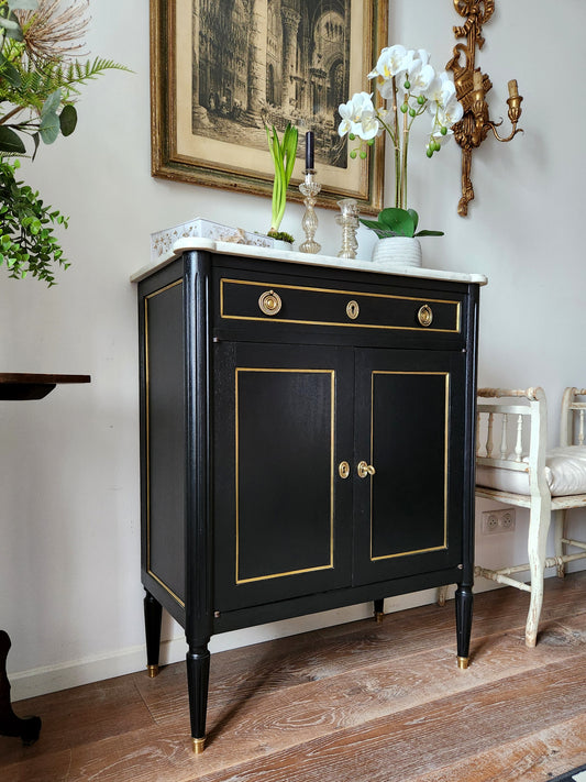 Buffet ancien Louis XVI, marbre de Carrare et Bronze.