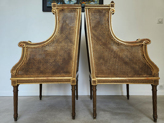 Paire de fauteuils Louis XVI, bois doré, 18ème siècle.