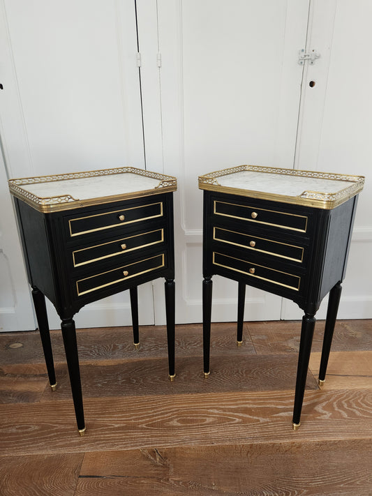 Paire de chevets Louis XVI, marbre de Carrare, Bronze.