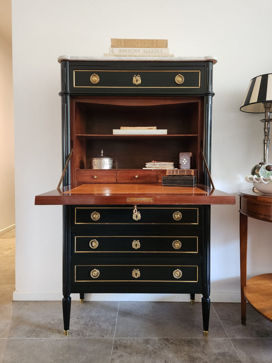 Secrétaire Louis XVI, marbre de Carrare, bronze.