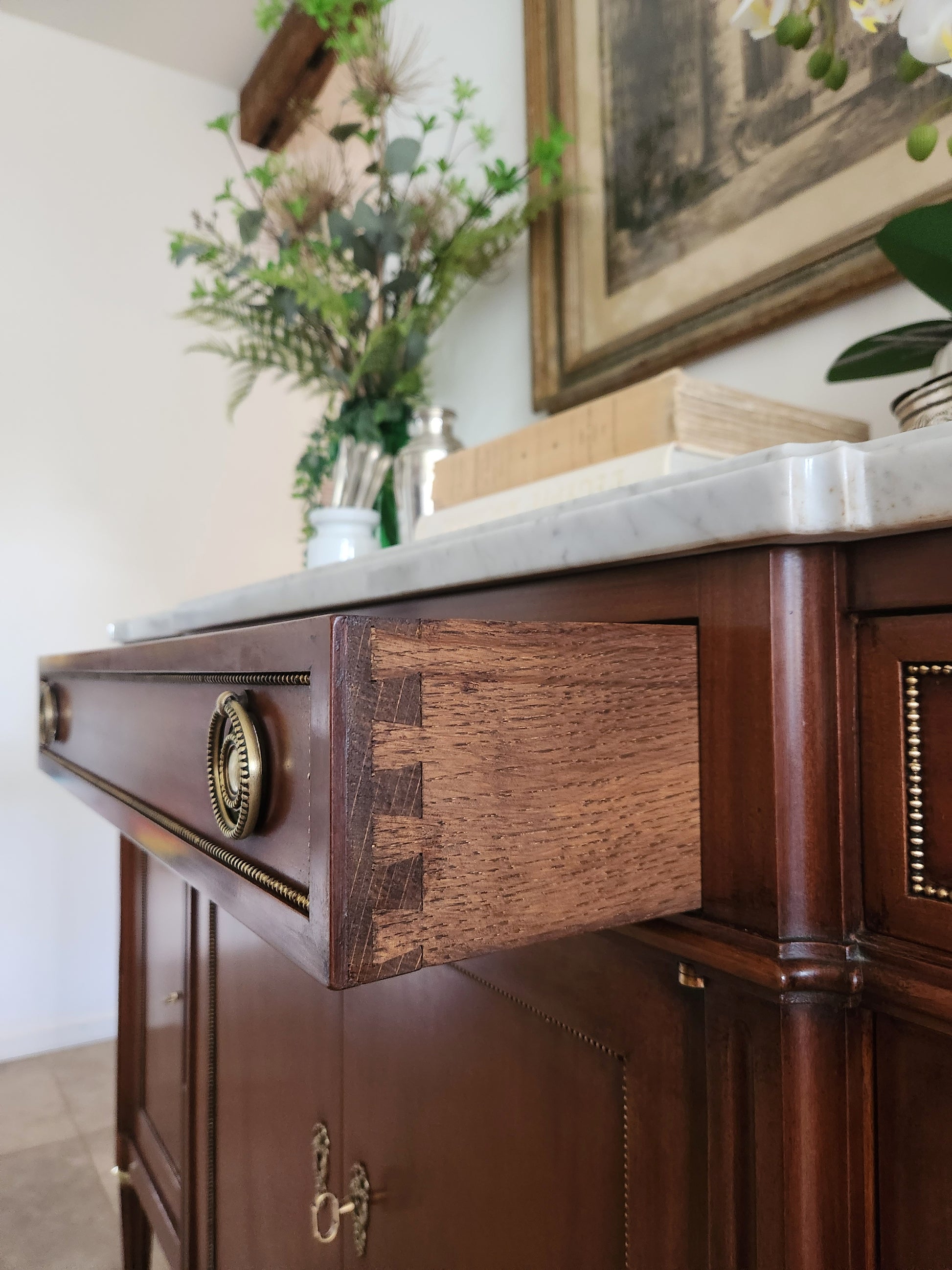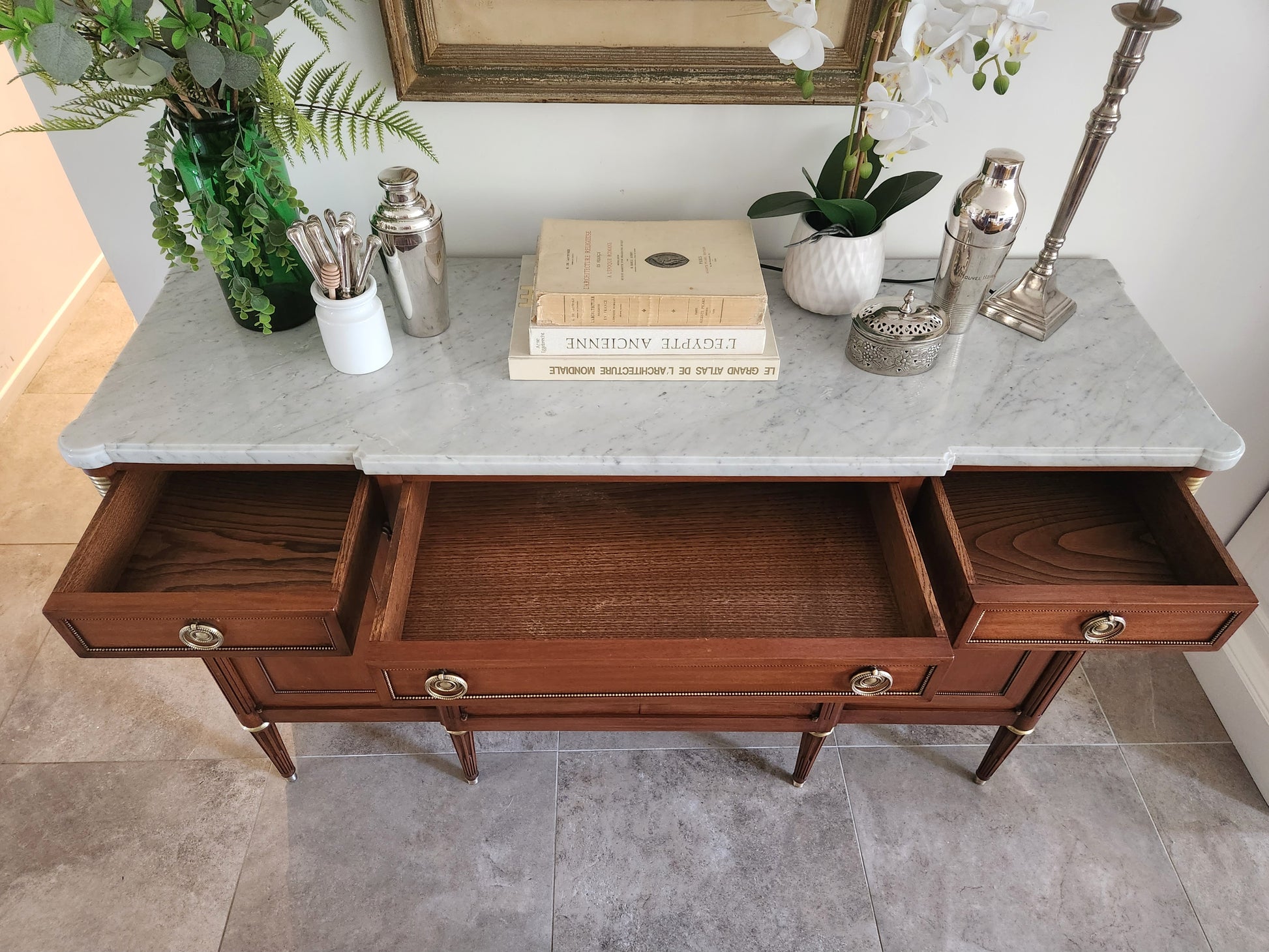 Buffet ancien Louis XVI, marbre de Carrare et Bronze.