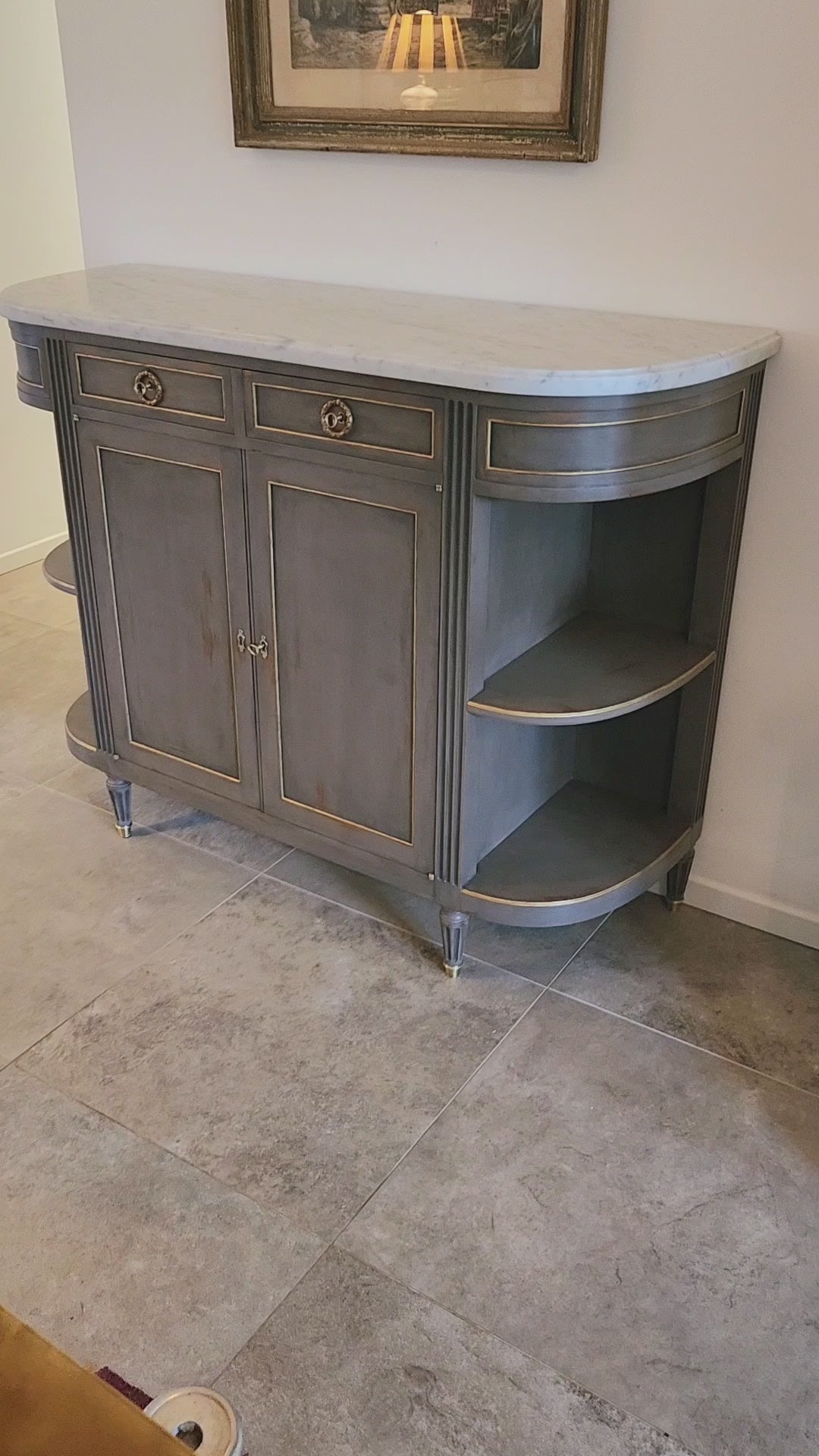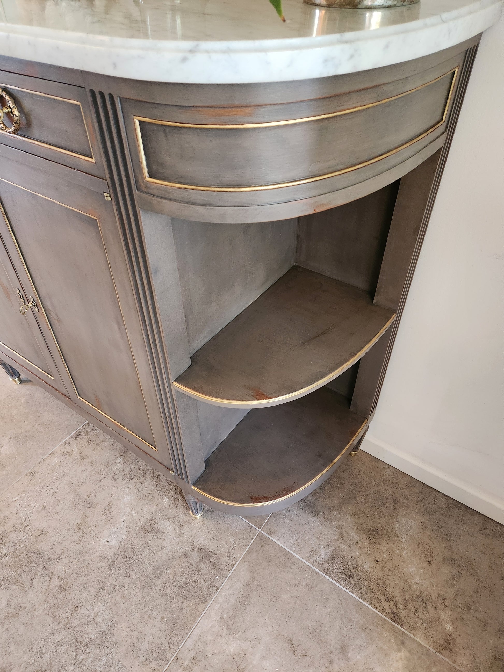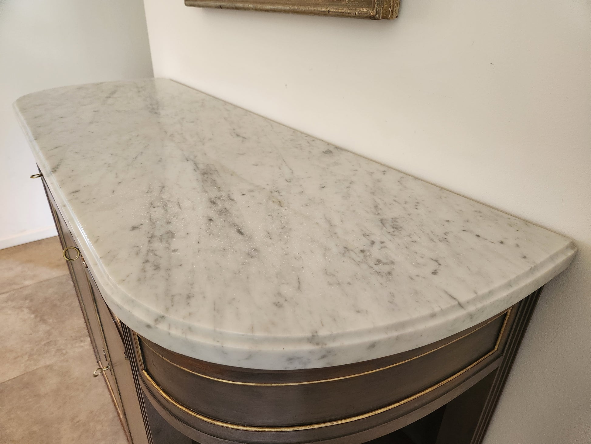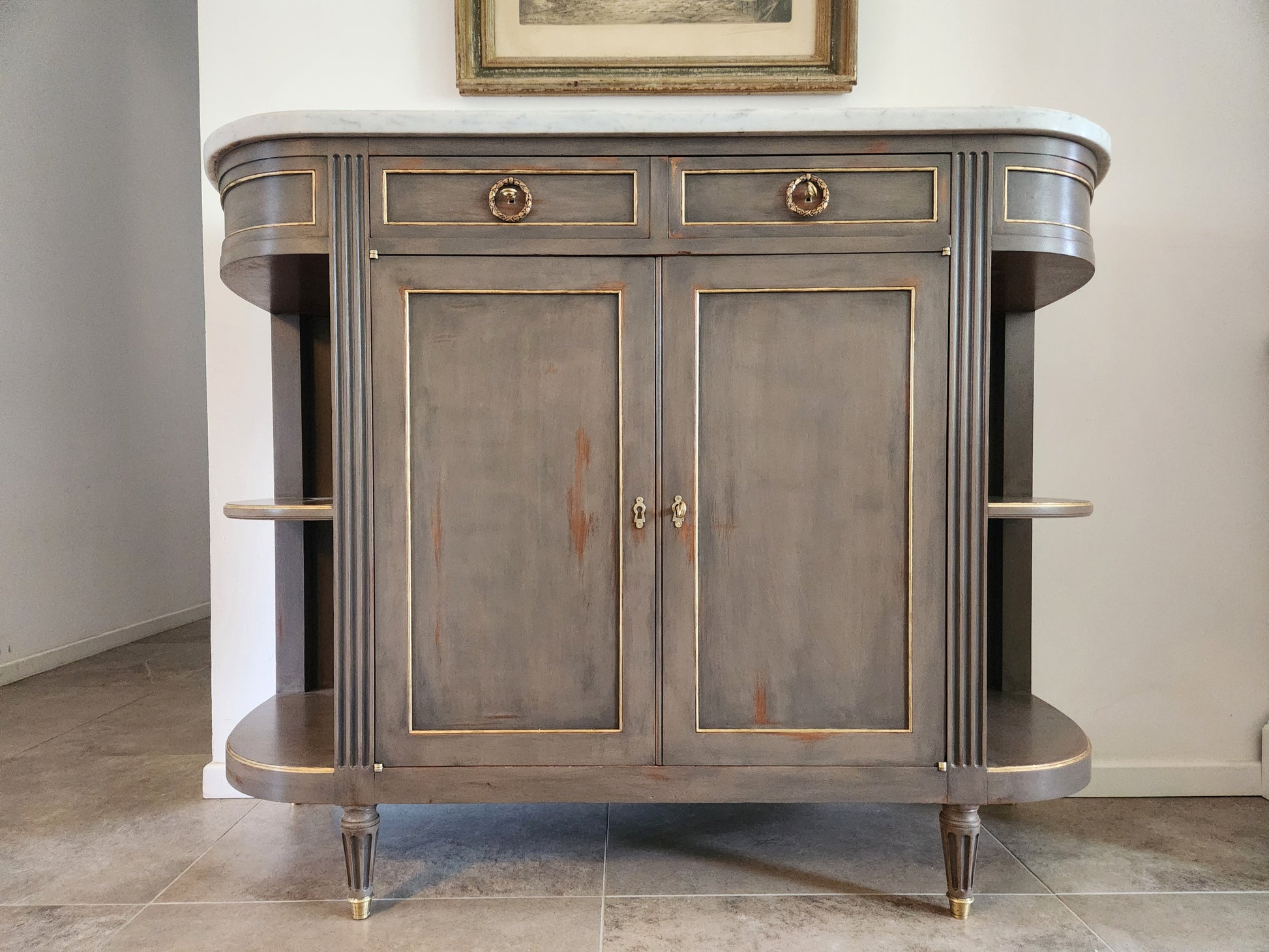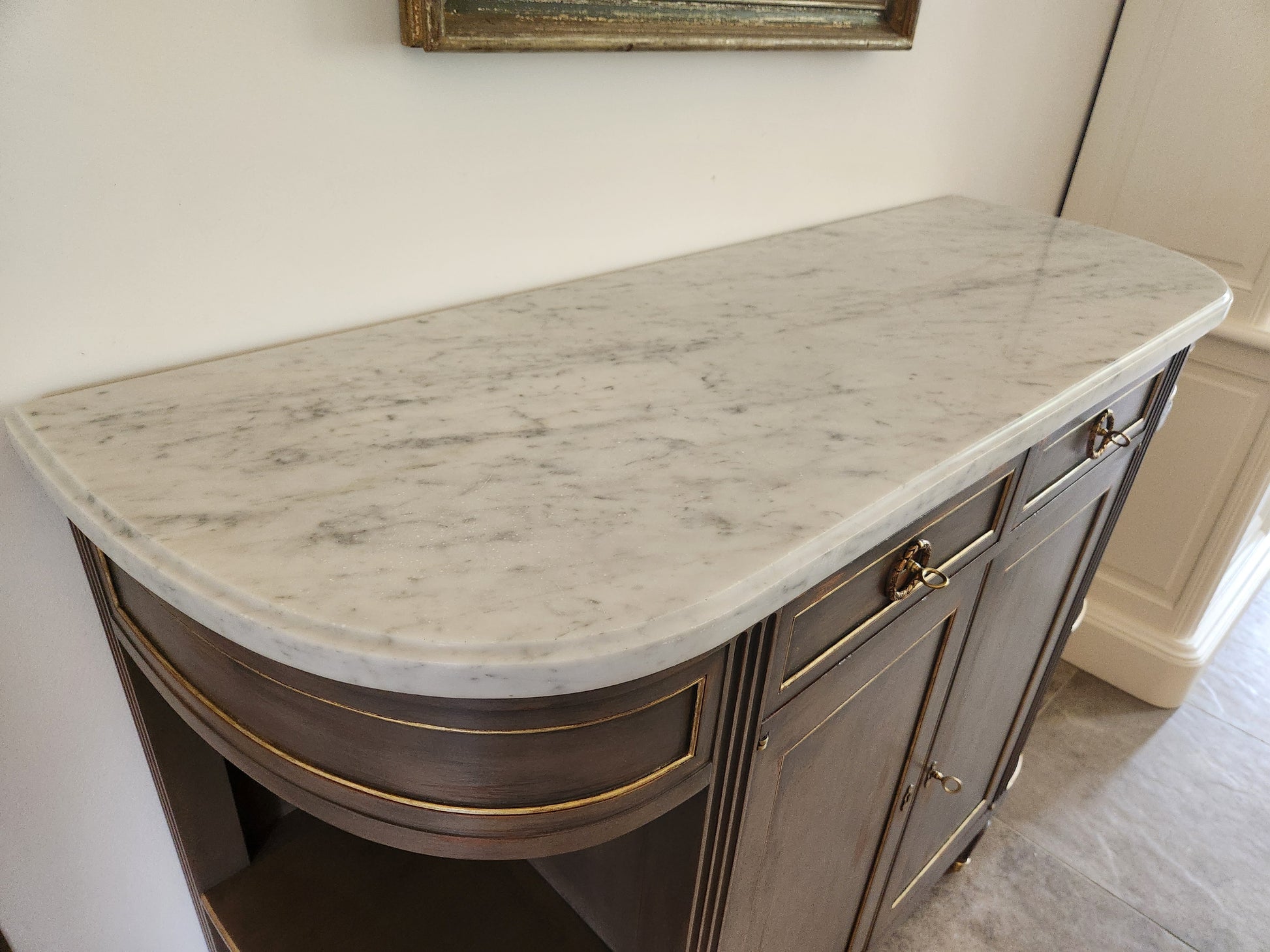 Buffet Louis XVI, marbre de carrare et détails en bronze.