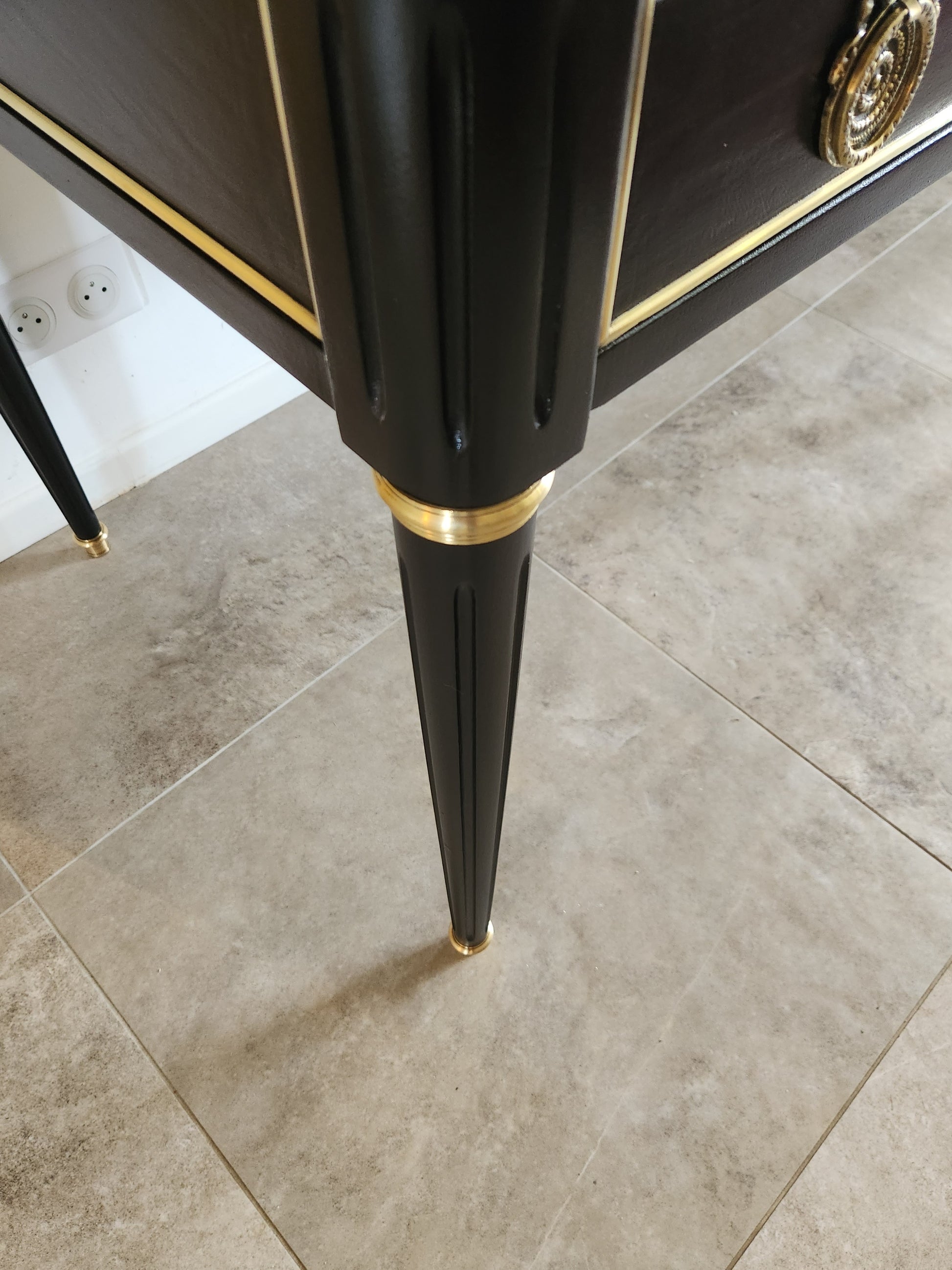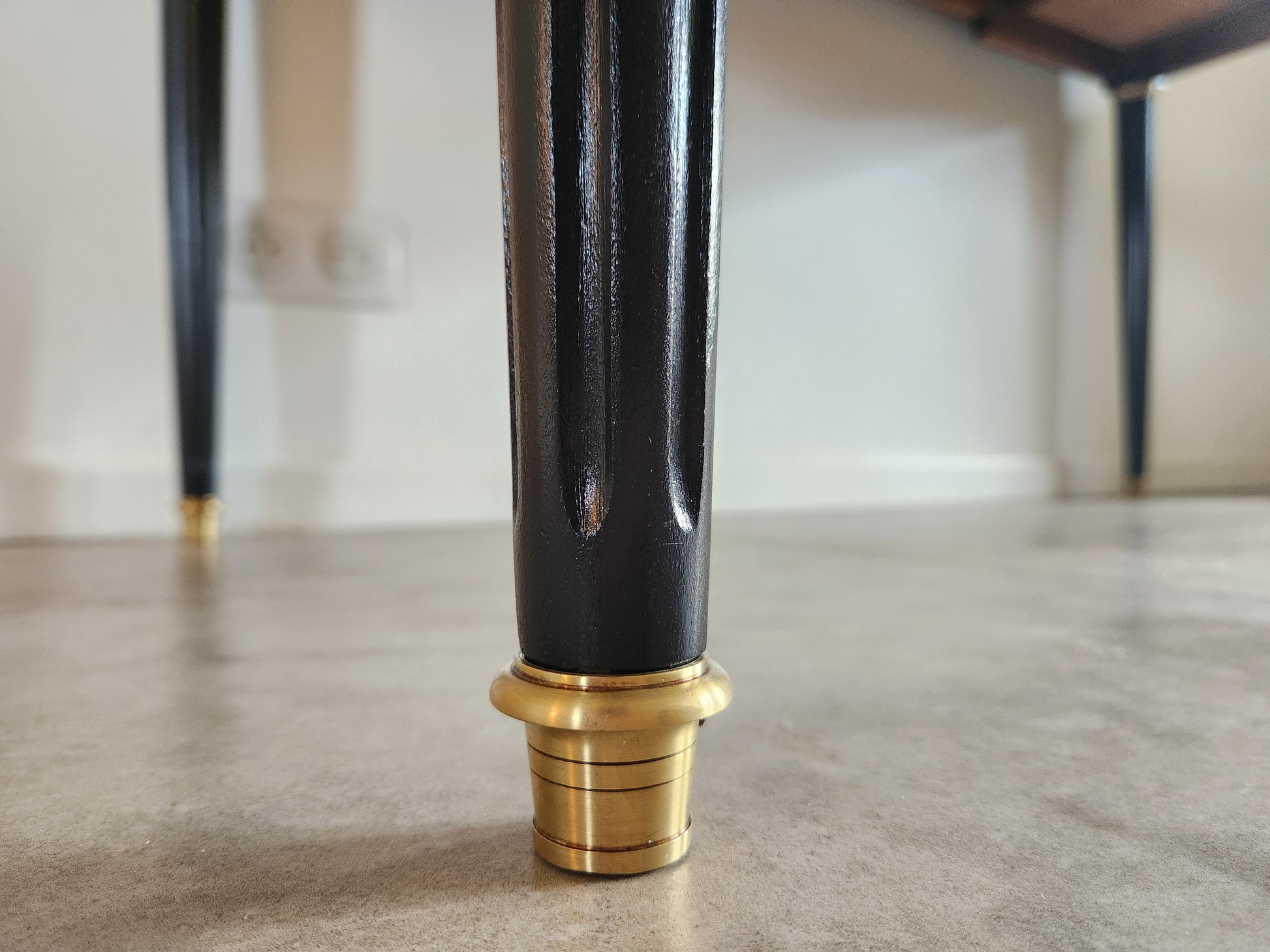 Elégants pieds cannelés avec anneaux dorés et terminés par des sabots en bronze doré.