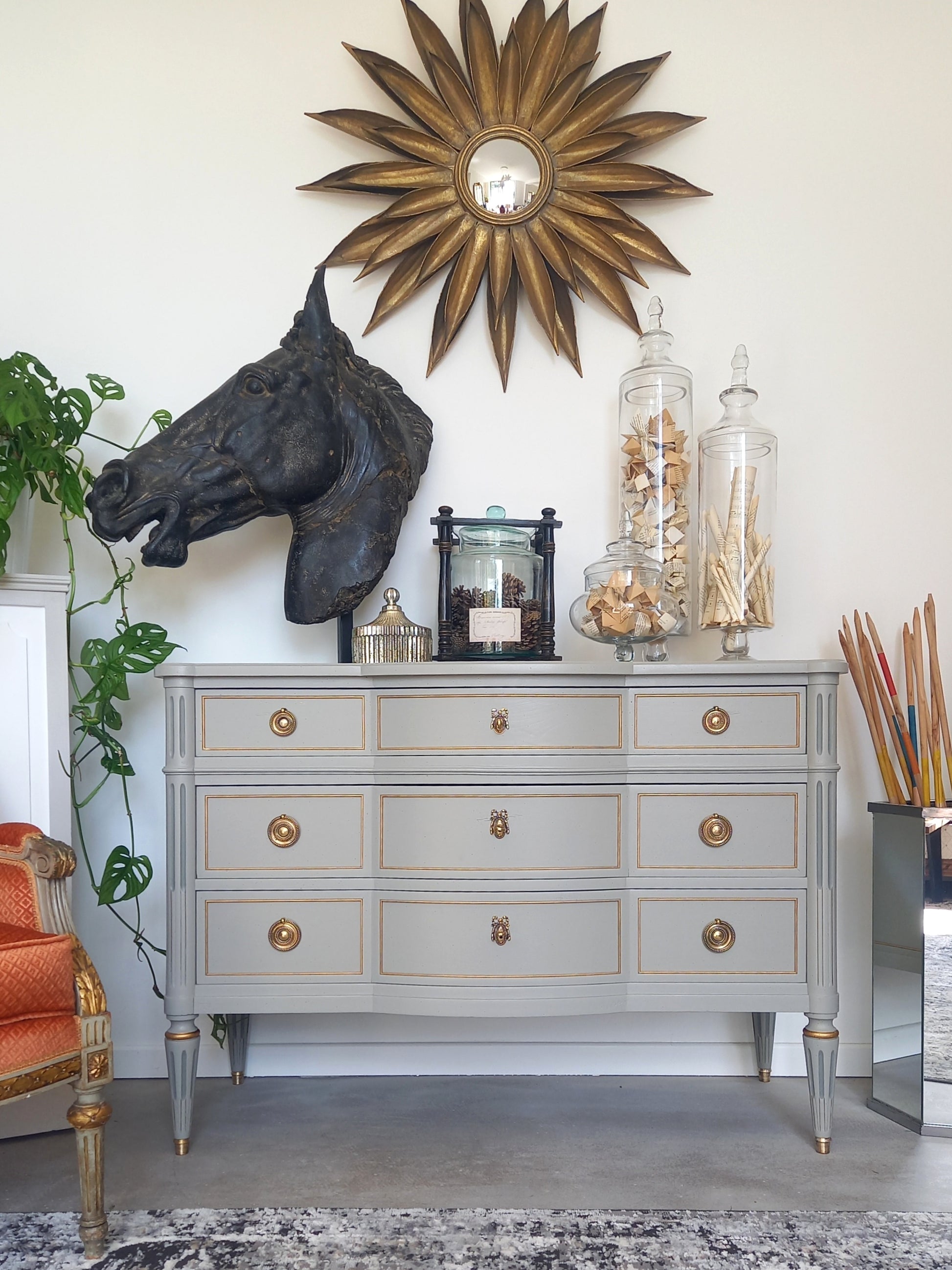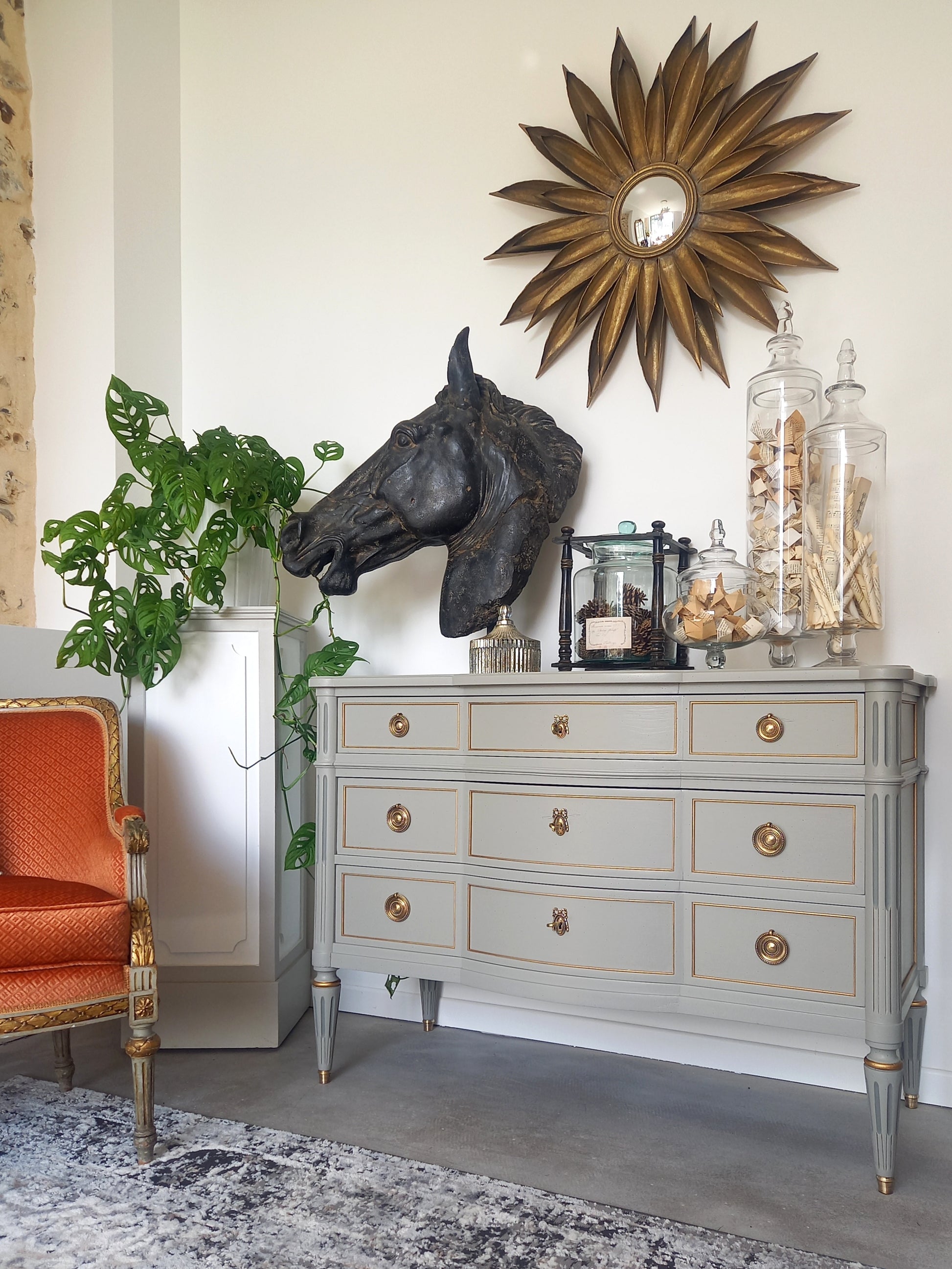 Commode galbée ancienne de style Louis XVI.