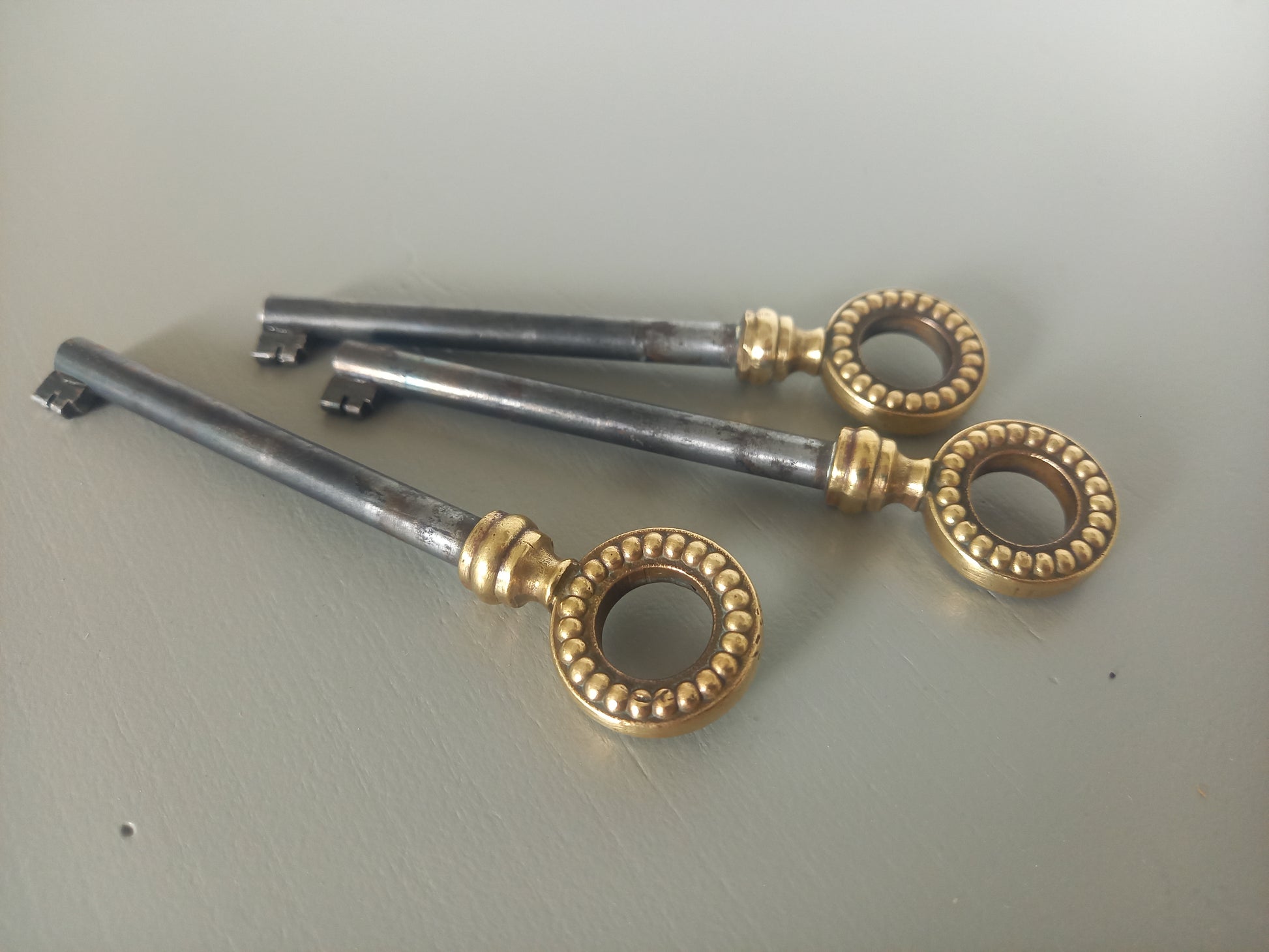 Trois tiroirs en queue d'aronde, pieds cannelés terminés par des bagues et sabots en bronze doré patiné.
