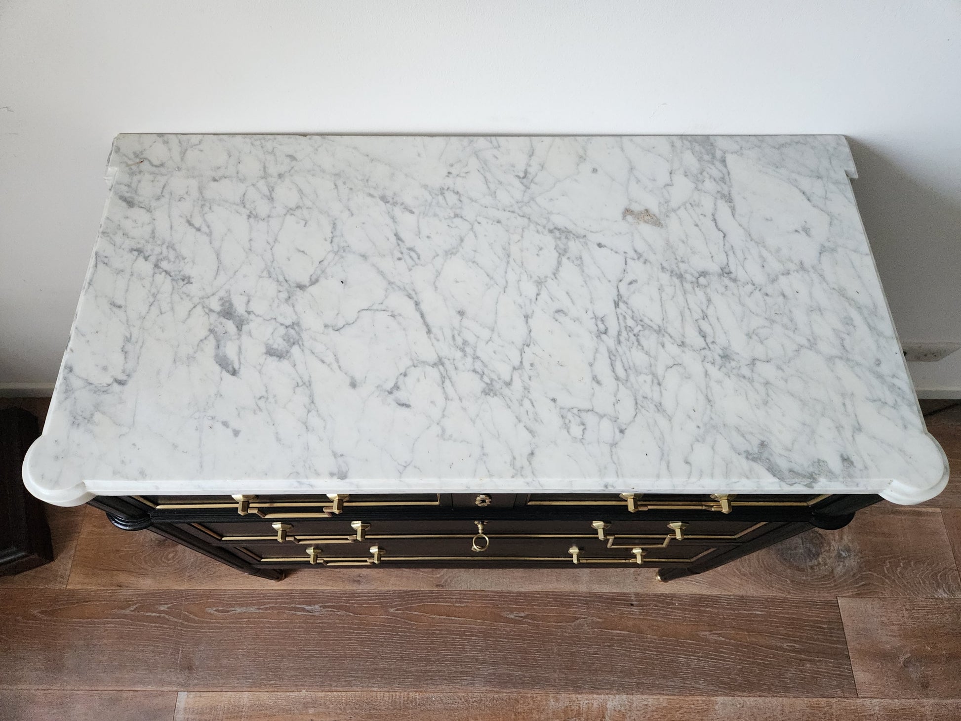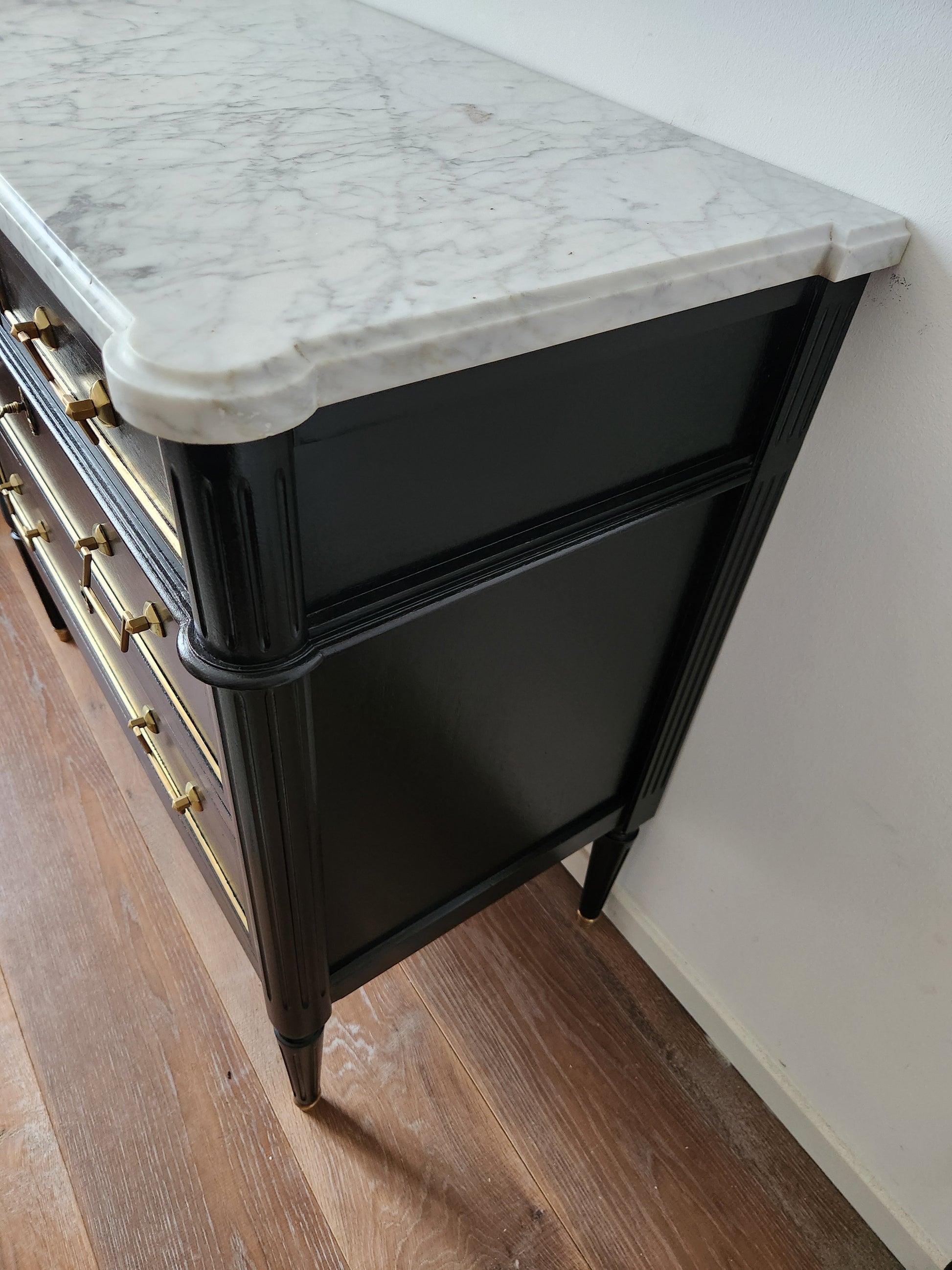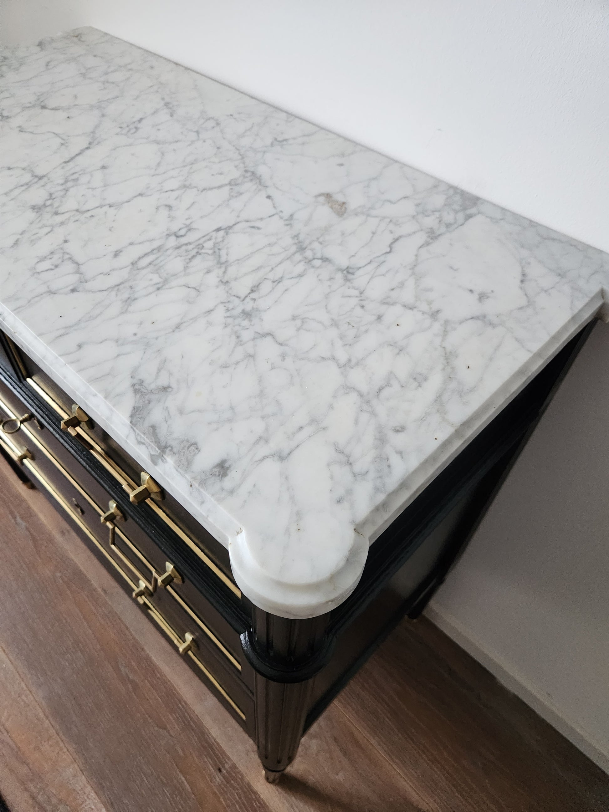 Commode Louis XVI, marbre de Carrare.
