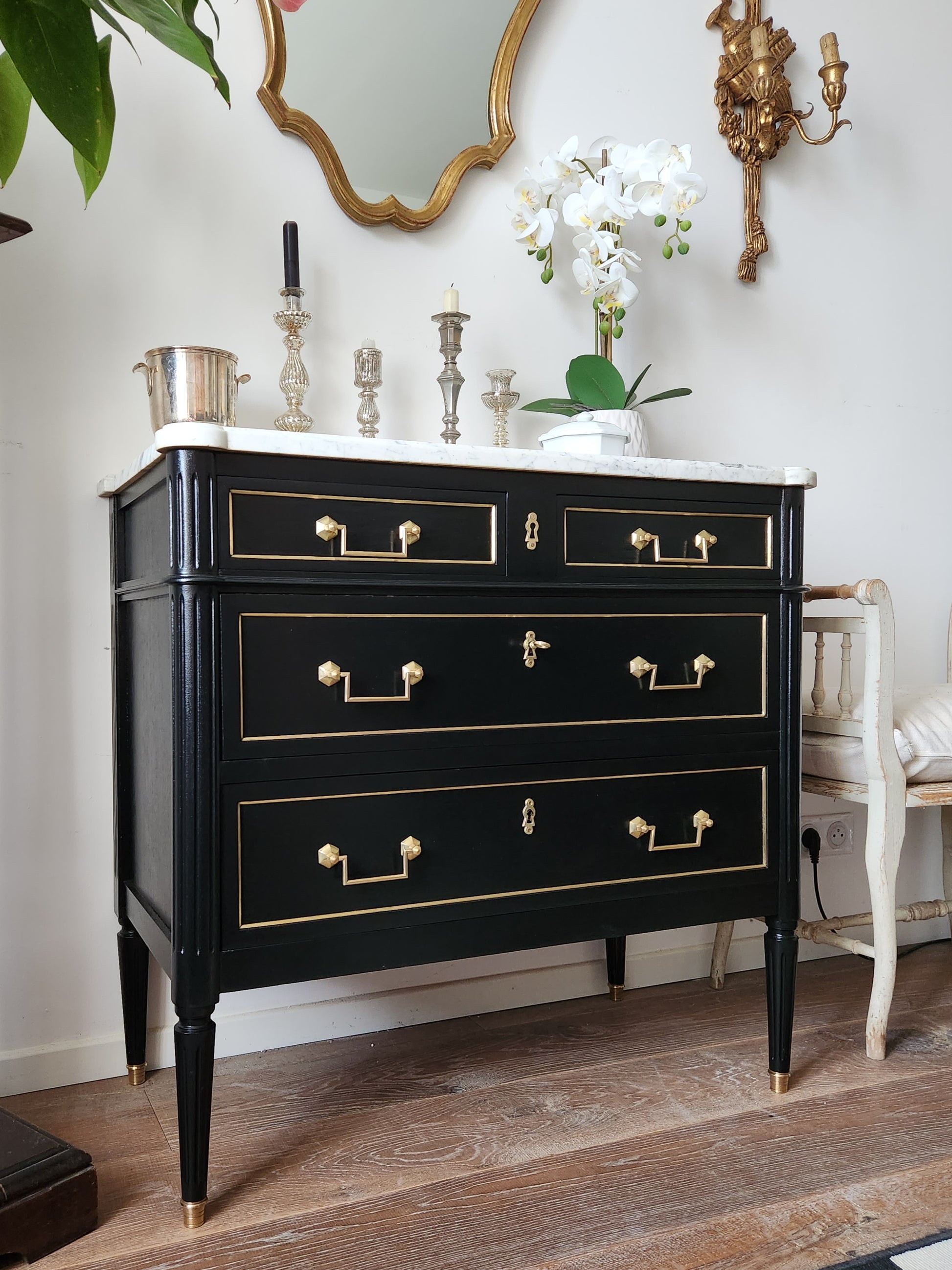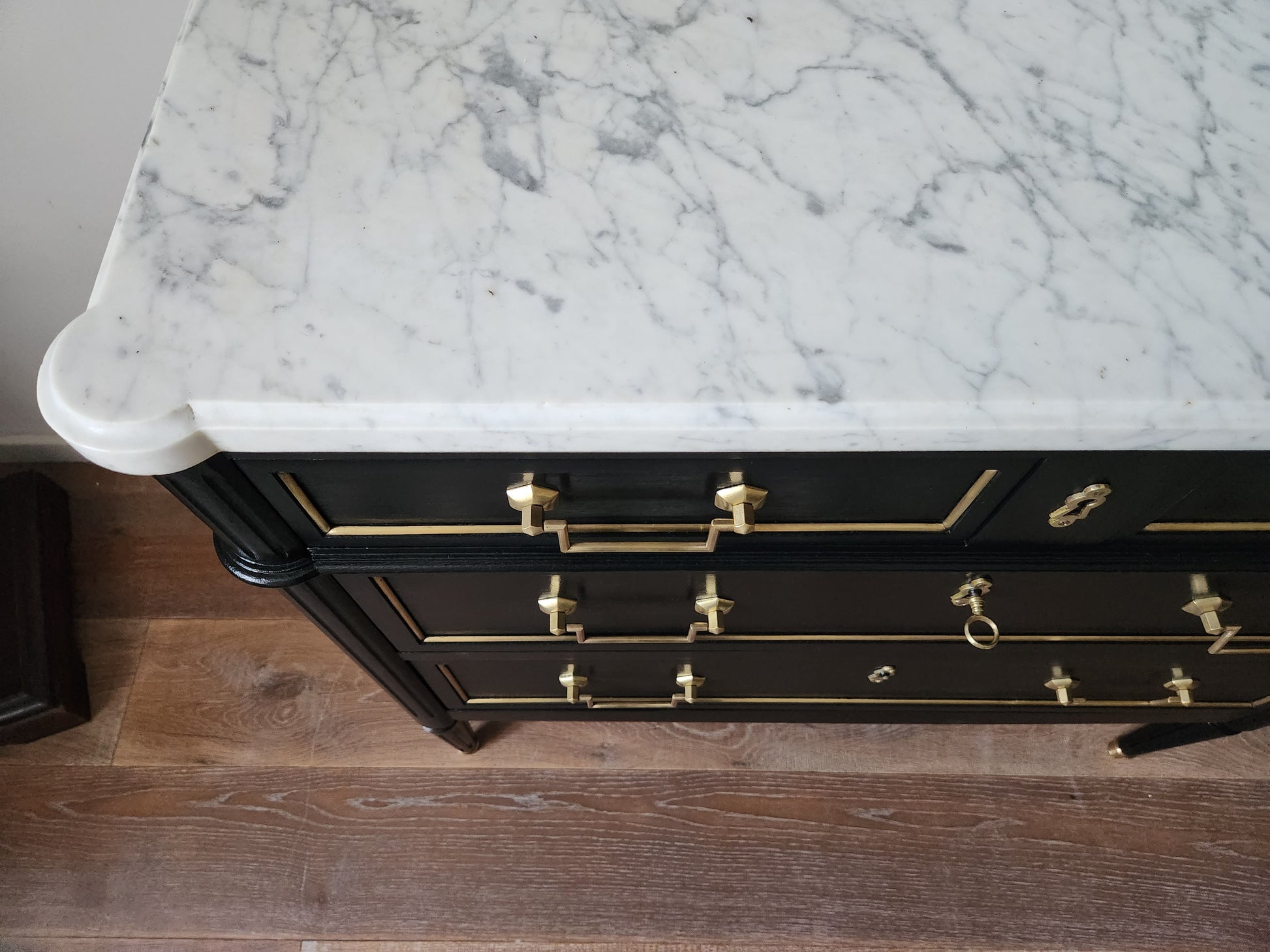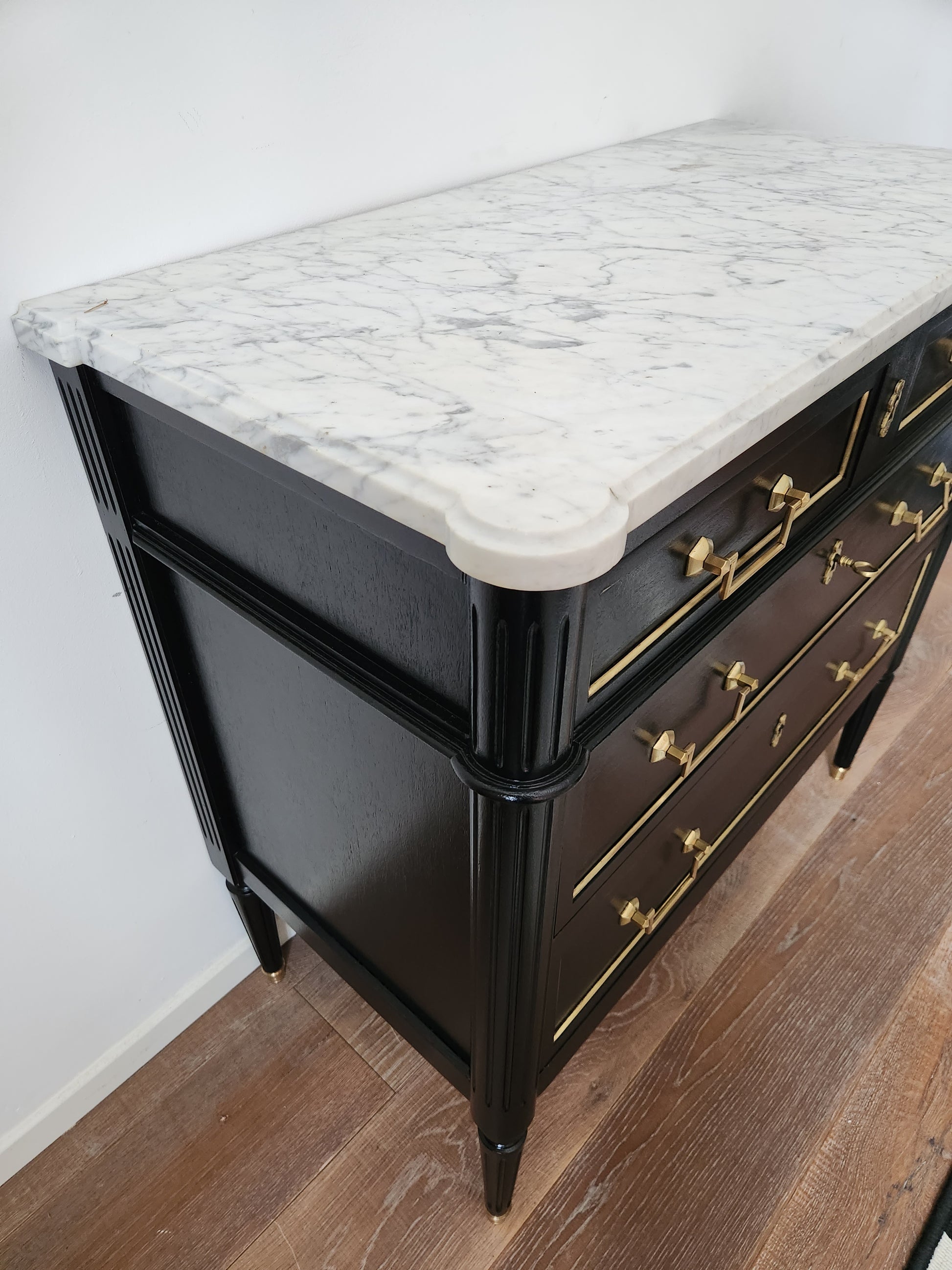 Commode Louis XVI, marbre de Carrare.