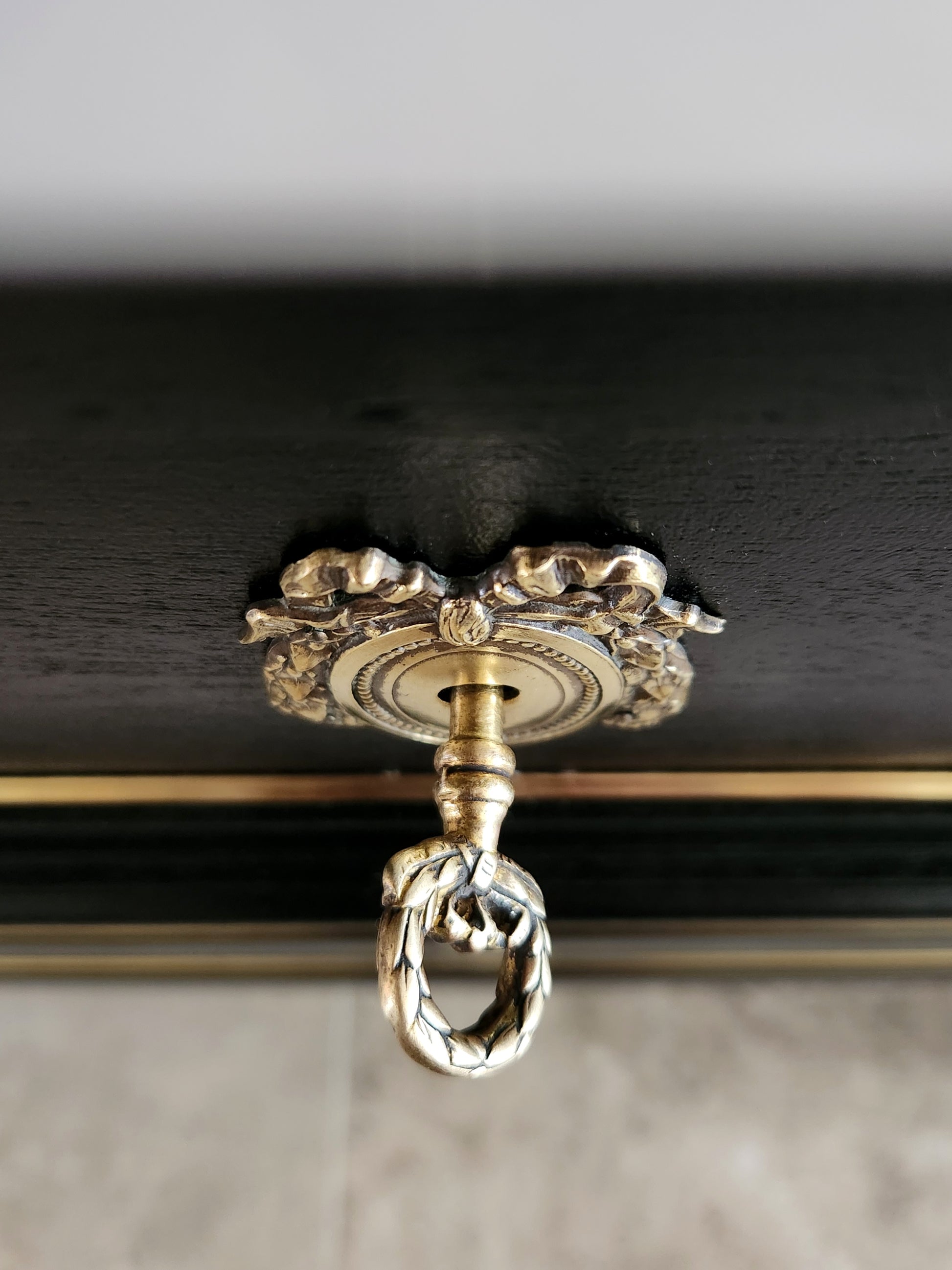 Commode Louis XVI, marbre de Carrare, bronze et laiton.