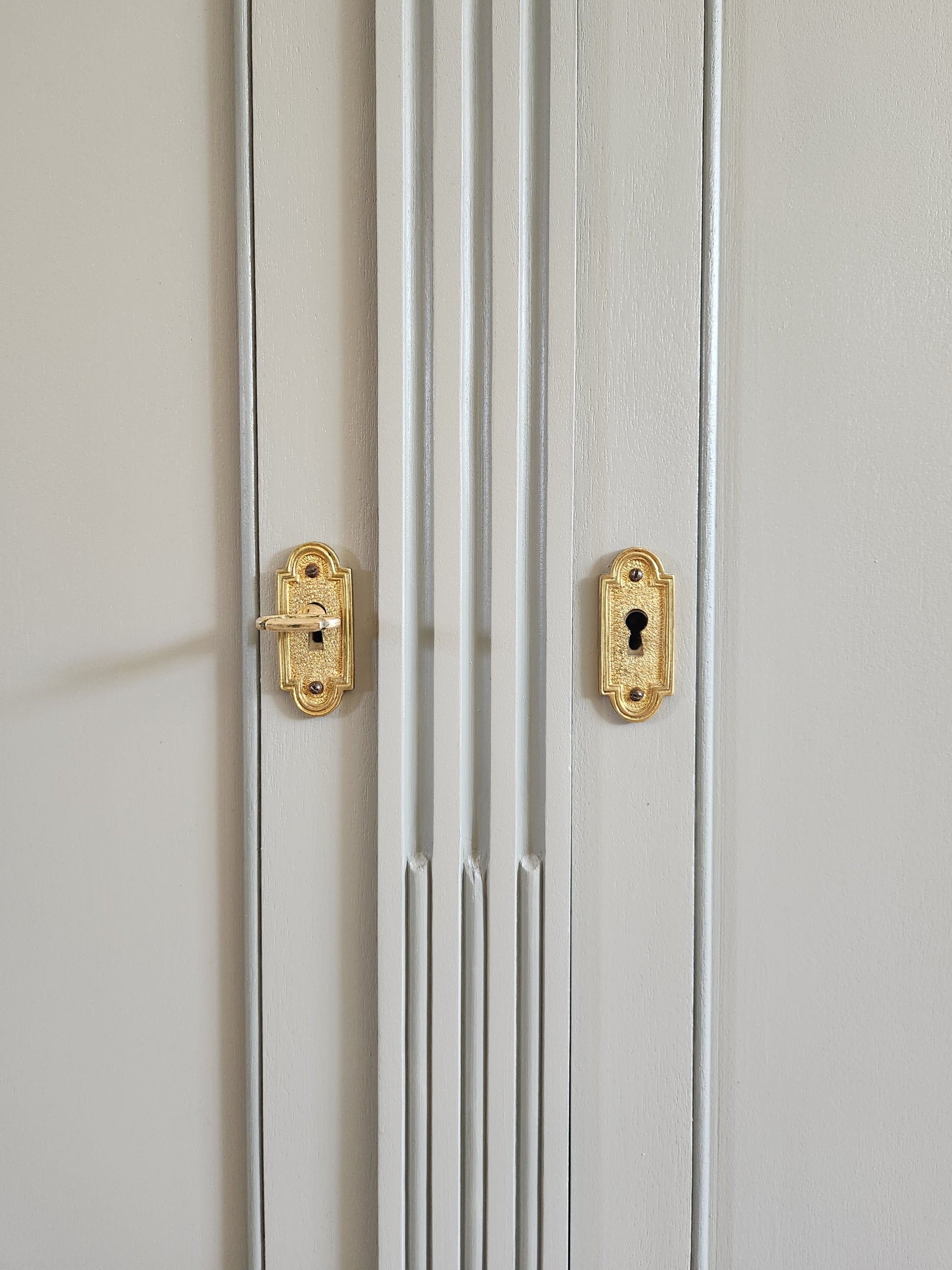 Trois tiroirs en queue d'arronde, et portes avec détails en laiton et bronze, trois clefs. Le marbre est en parfait état.