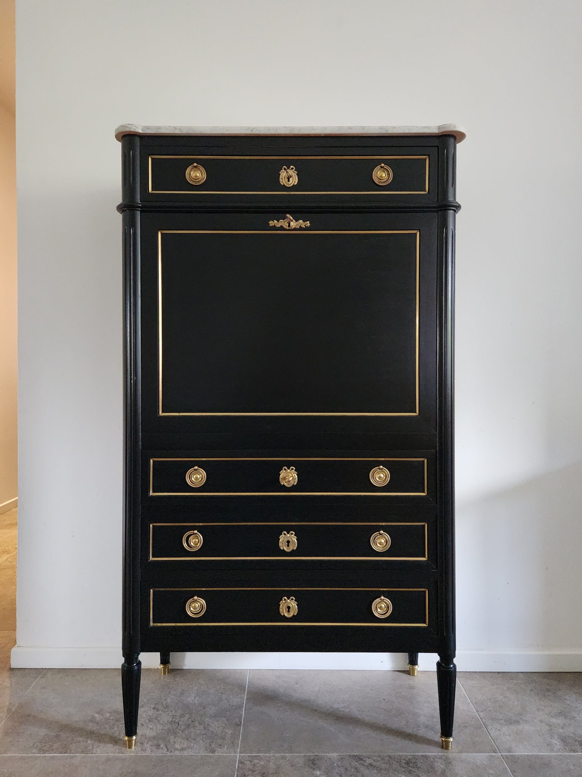 Secrétaire Louis XVI, marbre de Carrare, bronze.